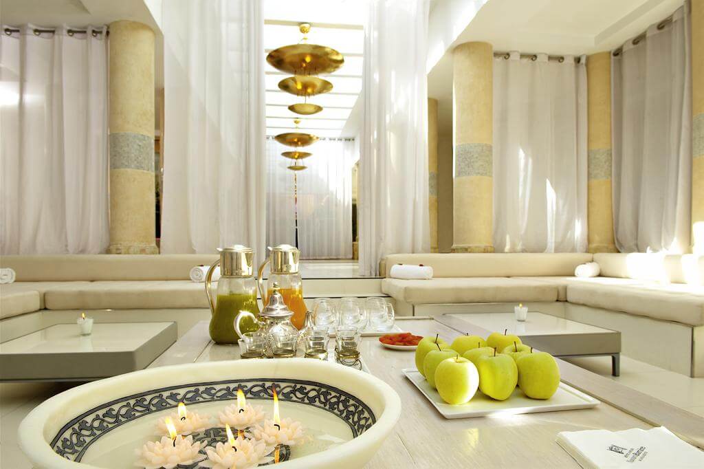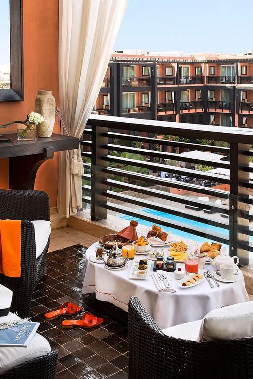 Situé entre Palmeraies et Médina, l’hôtel le Naoura est un grand hôtel luxueux avec un design sophistiqué dans un jardin verdoyant arboré par des palmiers. En effet, cet établissement à 5 étoiles est valorisé par un mélange harmonieux des décors lumineux de Pascal Desprez sur le mur ocre de l’architecture traditionnelle marocaine.