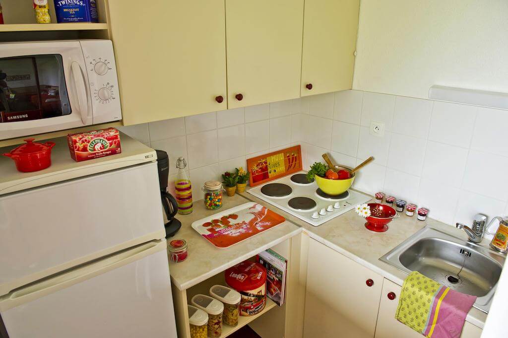 • Les appartements 2 pièces : un espace de 31 mètres carrés et pouvant recevoir 4 personnes. Un coin cuisine est disponible sur les lieux si vous préférez préparer vous-même votre petit-déjeuner.